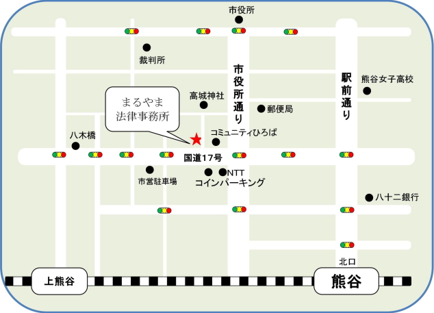 〒360-0042 埼玉県熊谷市本町1丁目62番地 M&Aビル本町4階 営業時間 平日:10:00〜18:00 土日祝:休み 法律相談予約・法律相談予約の空き状況はこちら 弊事務所の駐車場の場所はこちら